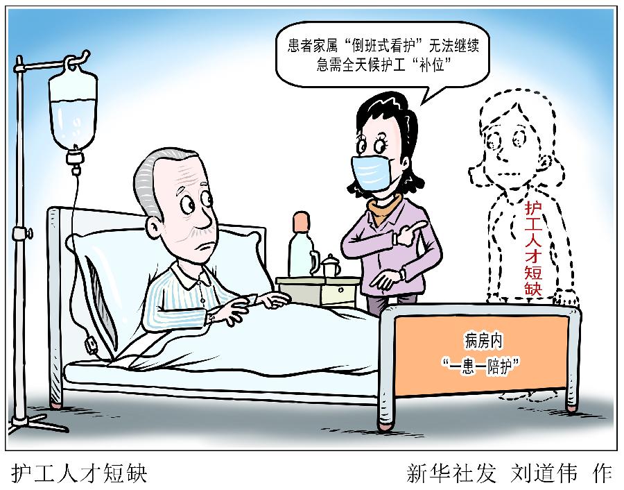 在今冬明春疫情防控形勢依然嚴峻的背景下,全國各地醫院嚴格執行標準化防護,“一患一陪護”已成為常態。一些患者家屬“倒班式看護”無法繼續,急需全天候護工“補位”。一時間,關于護工人才短缺等話題再次引發公眾熱議。