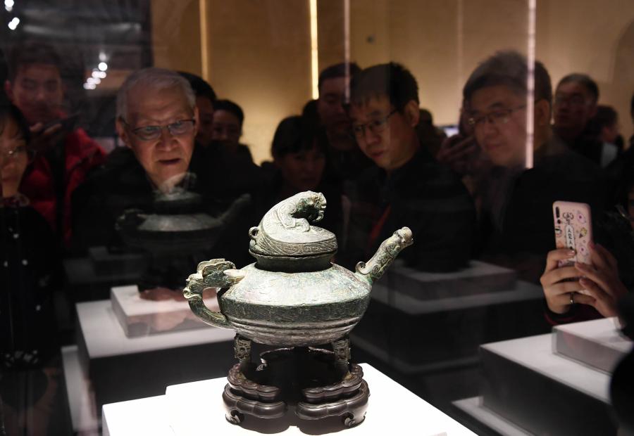 歸國文物西周青銅“虎鎣”亮相國博(新華社記者金良快 攝)