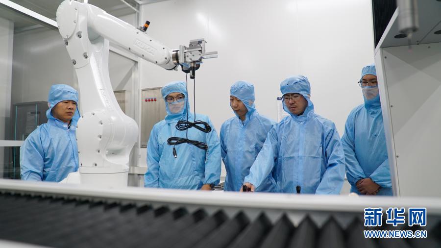 在中科院長春光機所,科研人員隋延林(中)和同事們探討科研方案(11月25日攝)。新華社發(王帆 攝)