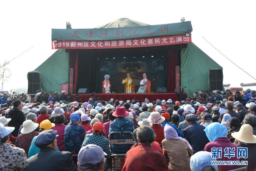 天津評劇院三團在天津市薊州區(qū)演出評劇《打金枝》(2019年4月15日攝)。新華社發(fā)