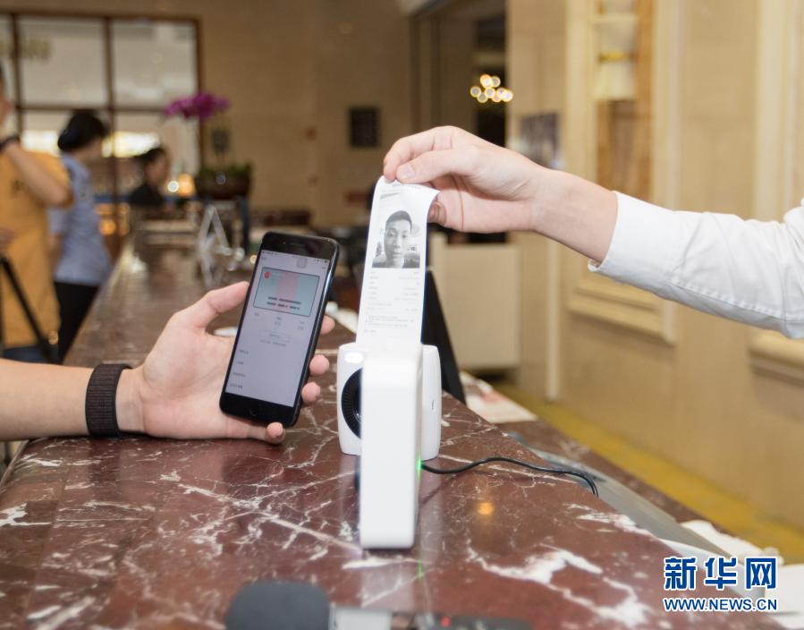 這是“微警認證”身份認證技術在辦理酒店入住時的應用場景(2018年7月19日攝)。新華社發(廣州市公安局供圖)