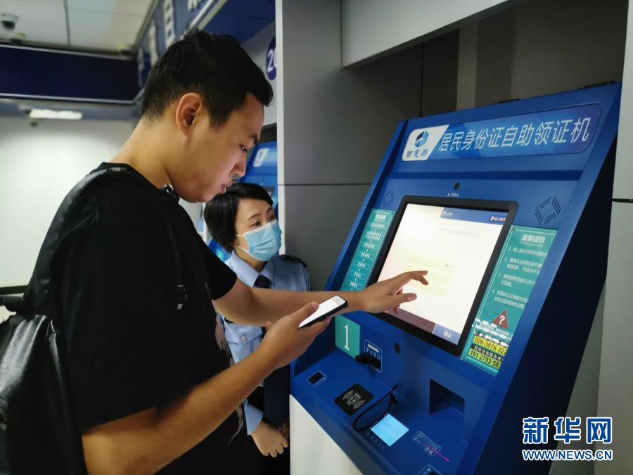 10月27日,市民在使用居民身份證自助領證機領取身份證。新華社發(廣州市公安局供圖)