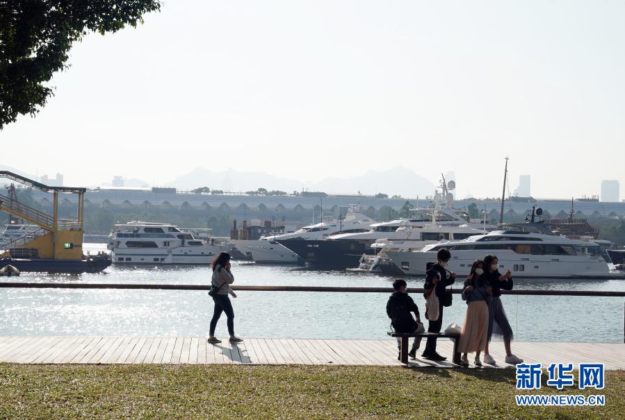 12月3日,在香港觀塘海濱花園,市民戴口罩出行。新華社記者 李鋼 攝