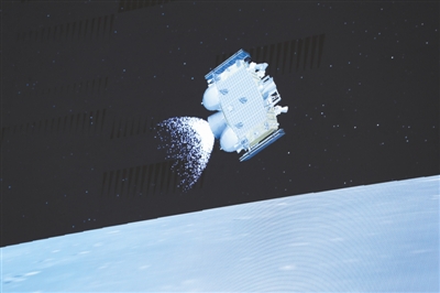 圖為12月3日,在北京航天飛行控制中心拍攝的嫦娥五號上升器飛行過程。新華社記者 金立旺攝