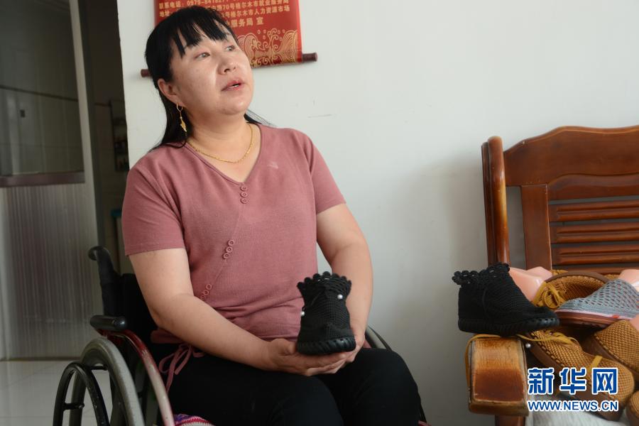 李秀山展示自己制作的針織鞋(8月6日攝)。新華社記者 王浡 攝