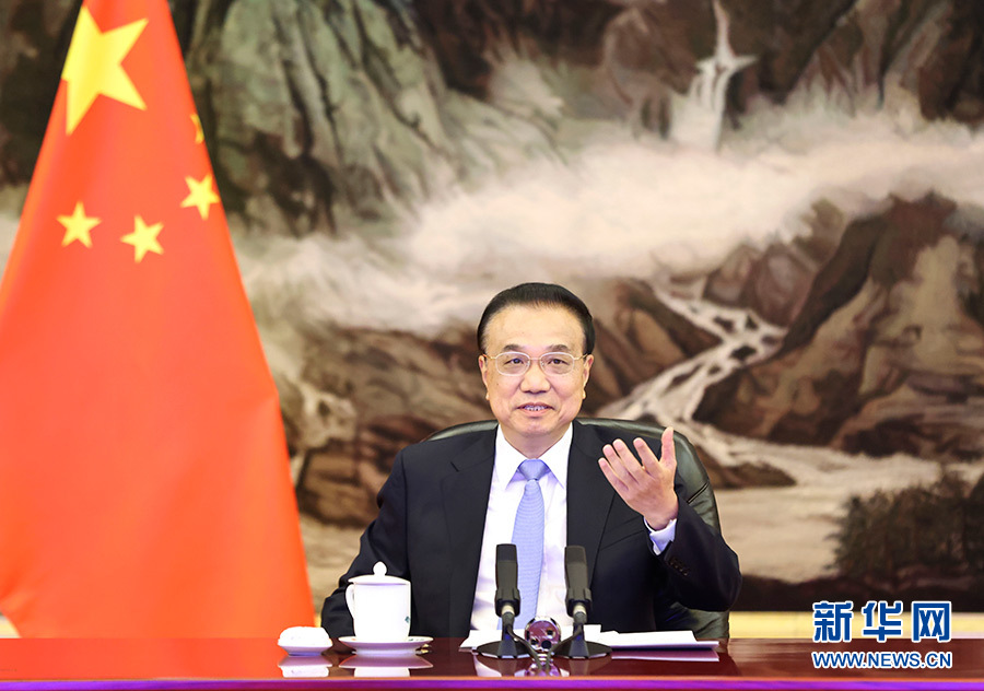 12月8日,國(guó)務(wù)院總理李克強(qiáng)在北京人民大會(huì)堂視頻會(huì)見(jiàn)國(guó)際貨幣基金組織總裁格奧爾基耶娃。 新華社記者 龐興雷 攝