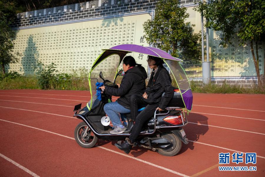 因為腿腳不便,張桂梅(后)坐車從田徑場回教學樓(11月30日攝)。新華社發(陳欣波 攝)