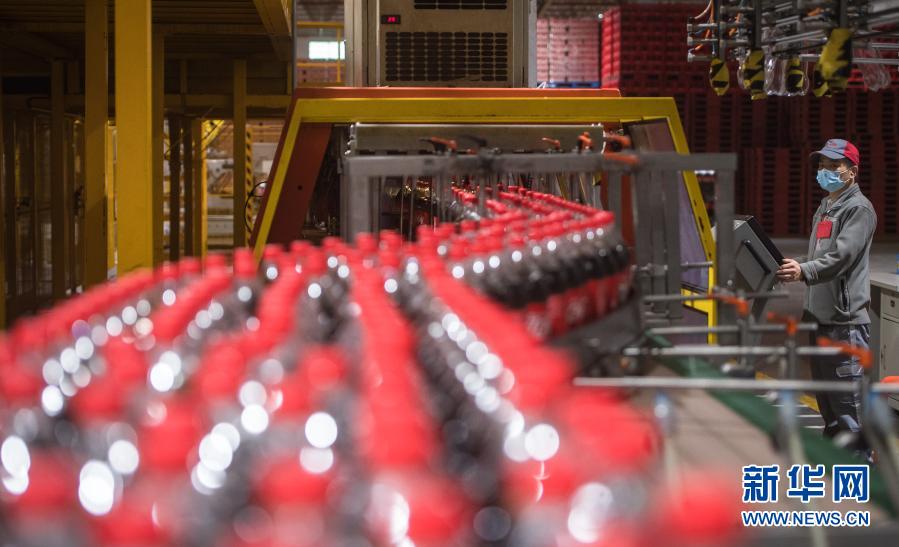 3月24日,工人在復工復產的湖北太古可口可樂飲料有限公司流水線上作業。新華社記者 肖藝九 攝