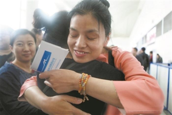 遼寧省援疆專家返程時(shí),與援疆前方指揮部的干部相擁。趙敬東 攝/人民圖片