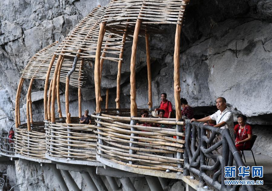 游客在廣西羅城仫佬族自治縣棉花天坑景區旅游觀光(9月15日攝)。新華社記者 陸波岸 攝