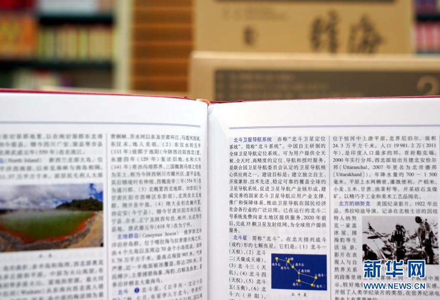 新版《辭海》中首次收錄的北斗衛星導航系統等詞條(9月10日攝)。新華社記者 劉穎 攝