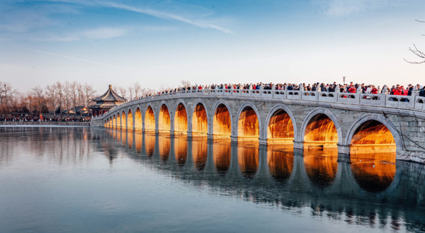 每年冬至前后北京頤和園十七孔橋都會出現“ 金光穿洞 ”奇觀