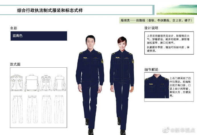 【這些綜合行政執法部門將統一著裝,你喜歡嗎?】財政部、司法部日前印發《綜合行政執法制式服裝和標志管理辦法》,明確加強生態環境保護、交通運輸、農業、文化市場、應急管理、市場監管等綜合行政執法制式服裝和標志管理。這6支綜合行政執法隊伍將統一著裝,不同執法隊伍通過標志中的名稱和圖案加以區分,徹底解決長期以來不同執法部門著裝五花八門的問題。來看看這些“新衣”預覽吧?。ㄓ浾呱赇?、白陽)