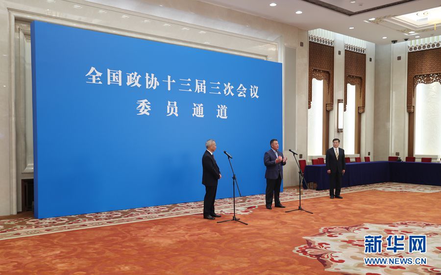全國政協十三屆三次會議首場“委員通道”采訪活動于5月21日在人民大會堂新聞發布廳舉行,邀請部分全國政協委員通過網絡視頻方式接受媒體采訪。圖為“委員通道”現場。新華網 王翰林 攝