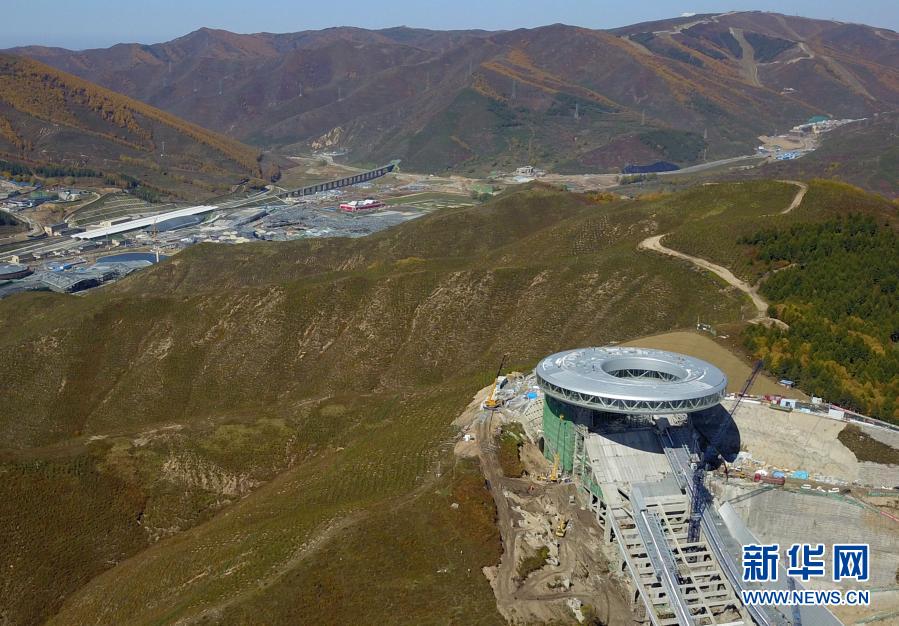 這是2020年9月26日拍攝的建設(shè)中的國家跳臺滑雪中心與不遠處的京張高鐵太子城站(無人機照片)。一百多年前,京張鐵路打破了中國人不能自建鐵路的斷言。2019年京張高鐵開通,它連接著2022年北京冬奧會的兩大舉辦地北京和張家口,帶動了沿線各地經(jīng)濟和旅游發(fā)展,為京津冀協(xié)同發(fā)展注入新動力。