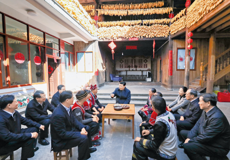 2020年1月19日至21日,中共中央總書記、國家主席、中央軍委主席習近平來到云南,看望慰問各族干部群眾,向全國人民致以新春祝福。這是19日下午,習近平在騰沖市清水鄉三家村中寨司莫拉佤族村,同村民李發順一家聊家常,詳細詢問脫貧情況。 新華社記者 鞠鵬/攝