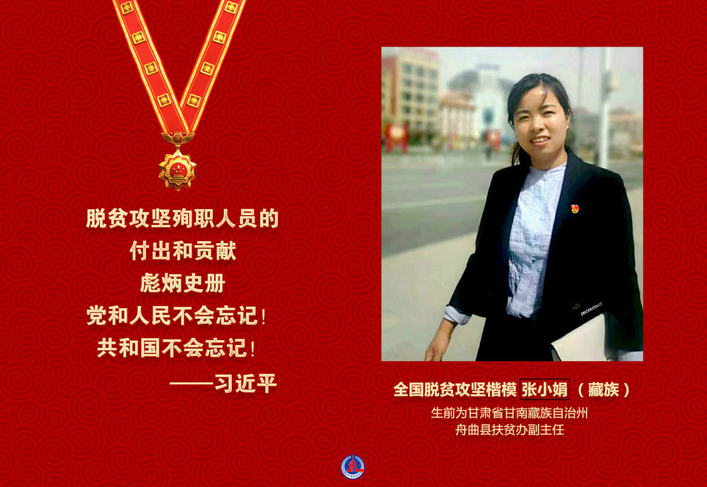 張小娟同志是在習近平新時代中國特色社會主義思想指引下成長起來的優秀共產黨員,是在脫貧攻堅一線不懈奮斗的優秀青年干部。2019年10月7日,在舟曲縣貧困鄉鎮脫貧攻堅驗收結束返回縣城途中因交通事故不幸殉職,年僅34歲。