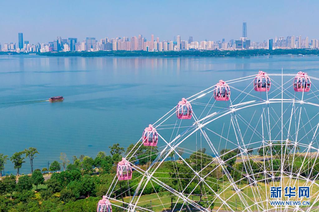 2020年8月17日拍攝的武漢“東湖之眼”摩天輪(無人機照片)。新華社記者 熊琦 攝