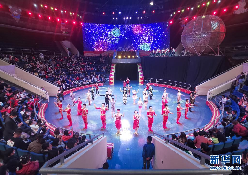 4月3日,武漢雜技廳的演員們在演出后向觀眾謝幕。新華社記者 肖藝九 攝