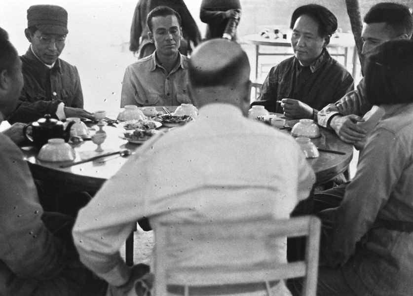 1944年6月,毛澤東設宴招待中外記者西北參觀團。 新華社圖片