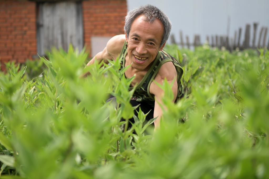5月15日,黑龍江省望奎縣海豐鎮(zhèn)恭頭一村脫貧戶邊志富在中藥材基地勞作。過去,恭頭一村村民以種地為主,村里沒有產業(yè)。駐村工作隊帶領村民走出一條適合當地的中藥材產業(yè)之路。