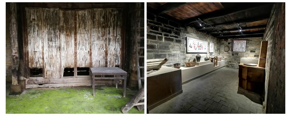拼版照片:左圖為2017年8月1日,記者拍攝的老宅內景。