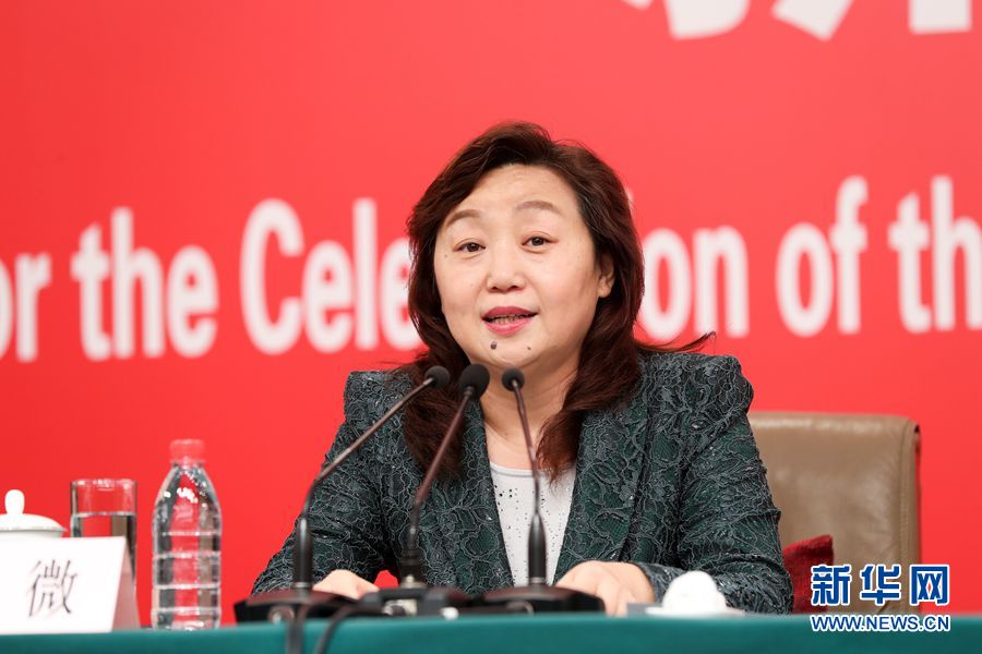 9月25日,慶祝中華人民共和國成立70周年活動(dòng)新聞中心在北京梅地亞中心二層新聞發(fā)布廳舉辦第二場(chǎng)專題集體采訪活動(dòng)。圖為聯(lián)歡活動(dòng)指揮部聯(lián)歡演出部常務(wù)副部長(zhǎng)龐微介紹相關(guān)情況。新華網(wǎng)記者 焦鵬 攝