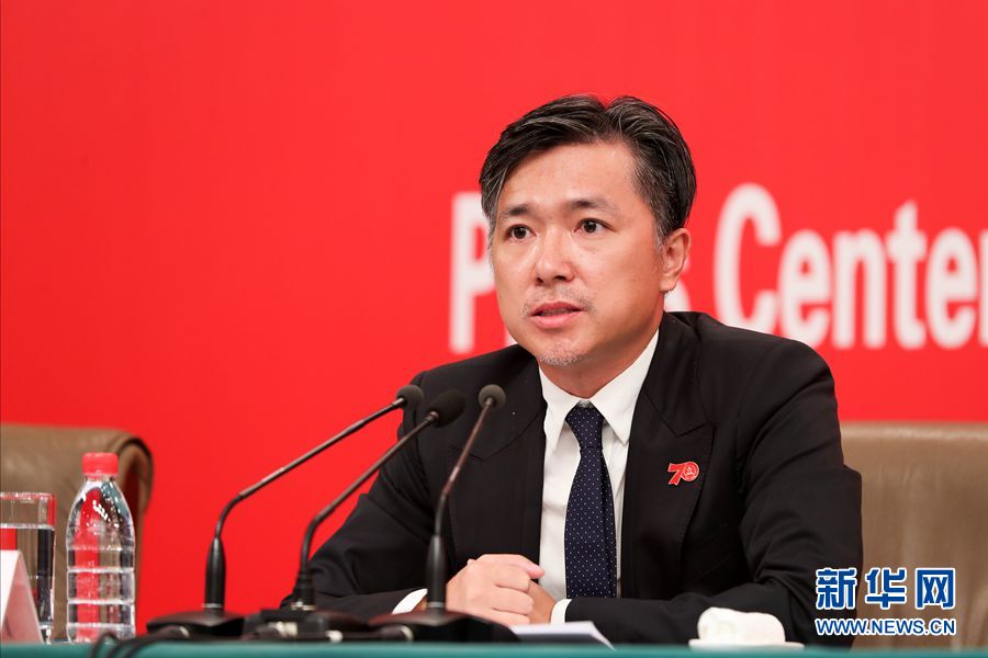 9月25日,慶祝中華人民共和國成立70周年活動新聞中心在北京梅地亞中心二層新聞發布廳舉辦第二場專題集體采訪活動。圖為群眾游行總導演、北京師范大學藝術與傳媒學院副院長肖向榮介紹相關情況。新華網記者 焦鵬 攝