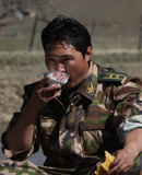 在海拔4300多米的當雄公路段見到魯海山的時候,他剛乘車13個多小時從格爾木趕回來。他中等個頭,黝黑臉龐,說話時目光炯炯。