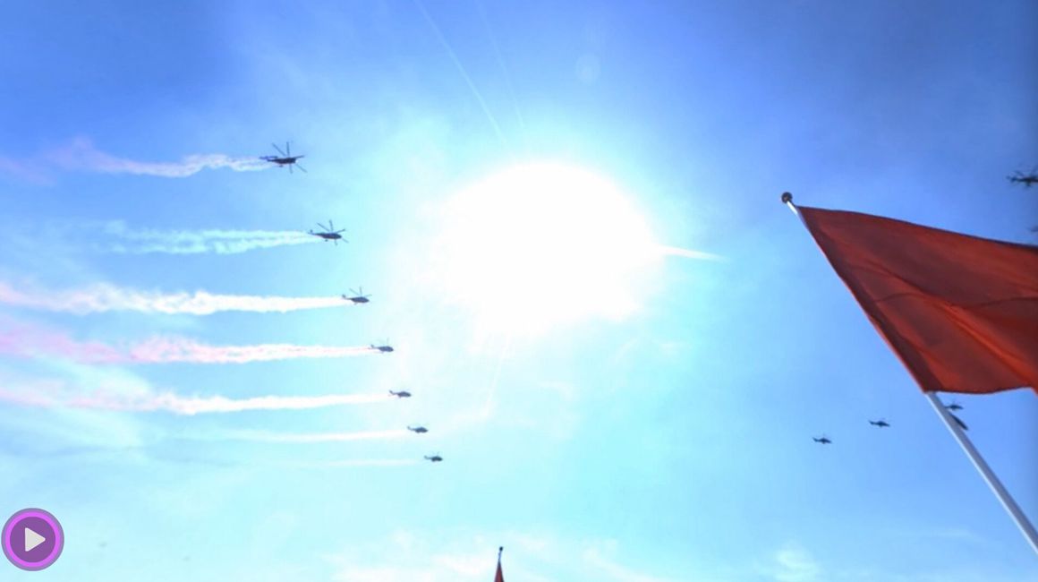 - 70架直升機大機群密集編隊飛過天安門上空