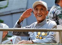 抗戰(zhàn)老同志乘車方隊:國共兩黨抗戰(zhàn)老兵共同參閱