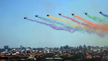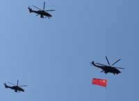 - 70架直升機組成的強大編隊最后通過天安門廣場上空