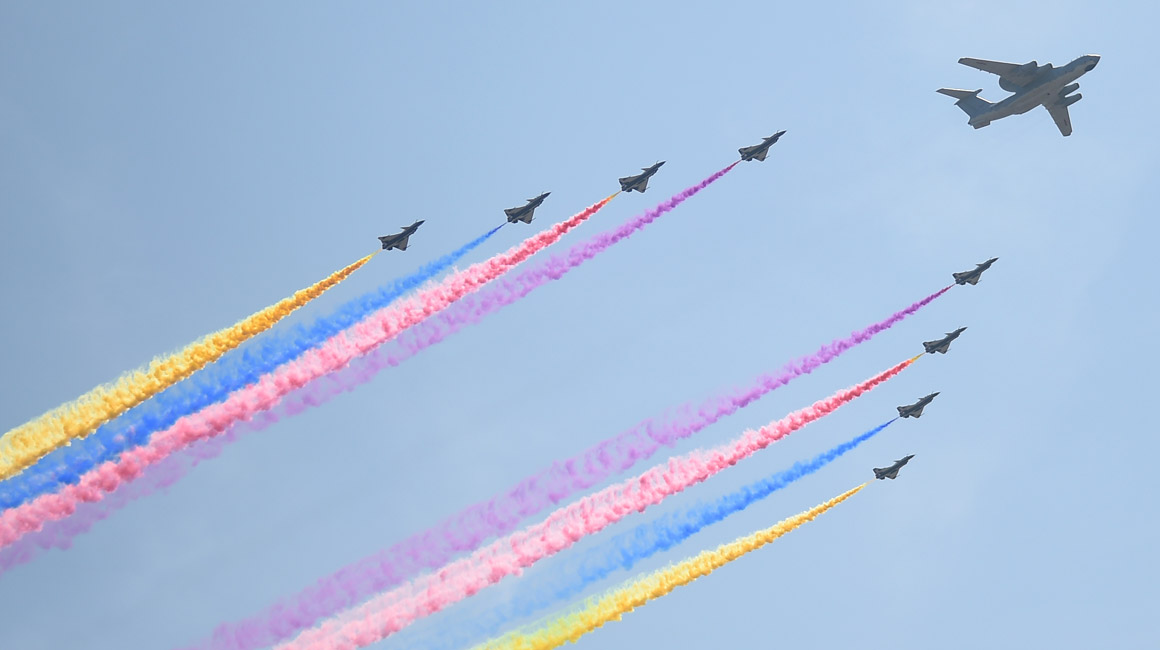 我國閱兵史上規(guī)模最為龐大的空中梯隊臨空接受檢閱