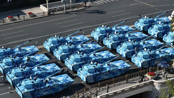 - 我軍最先進主戰(zhàn)坦克方隊以“箭形”隊形亮相