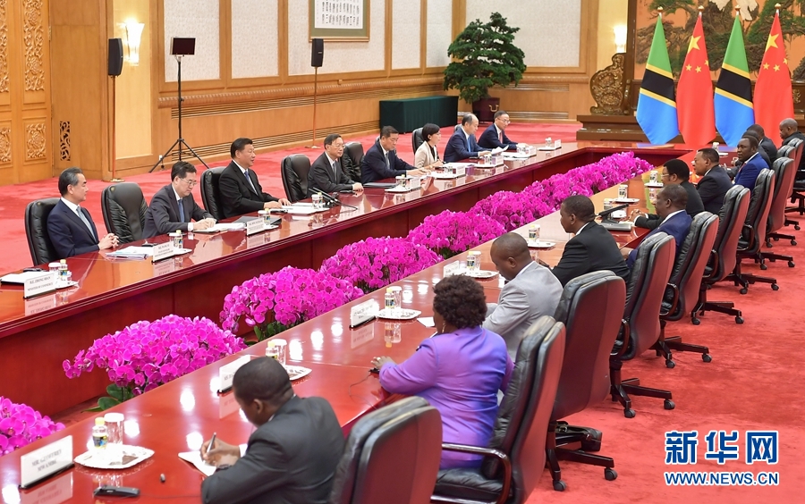 9月6日,國(guó)家主席習(xí)近平在北京人民大會(huì)堂會(huì)見坦桑尼亞總理馬賈利瓦。 新華社記者 饒愛民 攝