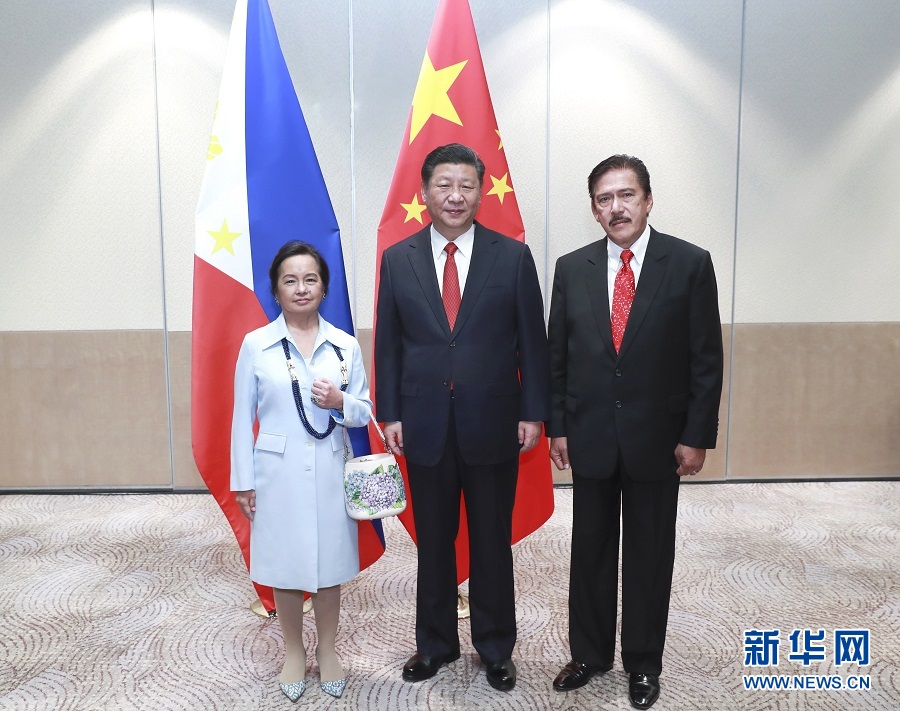 11月21日,國家主席習(xí)近平在馬尼拉會見菲律賓眾議長阿羅約和參議長索托。 新華社記者 龐興雷 攝