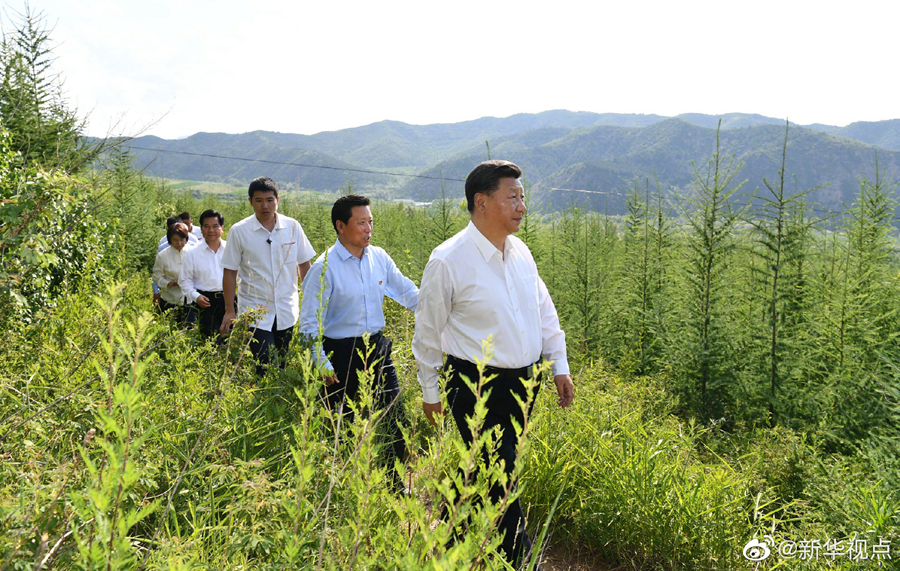 15日下午,習(xí)近平總書記來(lái)到內(nèi)蒙古赤峰市喀喇沁旗馬鞍山林場(chǎng)考察。沿著崎嶇的護(hù)林小道,習(xí)近平步行進(jìn)入林區(qū)察看林木長(zhǎng)勢(shì),同正在作業(yè)的護(hù)林員們親切交談,了解林場(chǎng)建設(shè)發(fā)展情況。大家告訴總書記,現(xiàn)在生態(tài)好了,在上山巡護(hù)的時(shí)候,時(shí)常碰到狍子、野兔、山雞、野豬等野生動(dòng)物,來(lái)旅游的人也多了,山野菜不愁賣了,山貨也特別多,老百姓切切實(shí)實(shí)得到了好處,更加深刻地認(rèn)識(shí)到綠水青山就是金山銀山。習(xí)近平對(duì)大家說(shuō):“護(hù)林員很重要,種樹多不容易啊!建設(shè)祖國(guó)北方和首都生態(tài)安全屏障是戰(zhàn)略性的任務(wù),是我們要世世代代做下去的事情。”