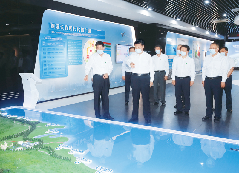 2020年7月22日至24日,中共中央總書記、國家主席、中央軍委主席習近平在吉林省考察。這是7月23日下午,習近平考察長春新區規劃展覽館,了解新區規劃建設情況。 新華社記者 王曄/攝