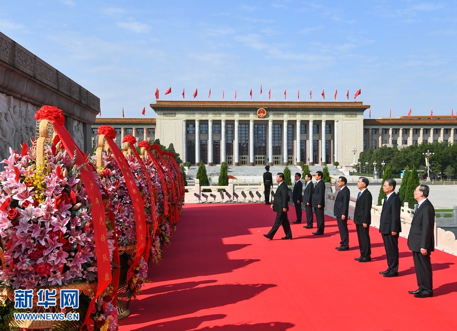 9月30日上午,黨和國家領(lǐng)導(dǎo)人習(xí)近平、李克強、栗戰(zhàn)書、汪洋、王滬寧、趙樂際、韓正、王岐山等來到北京天安門廣場,出席烈士紀(jì)念日向人民英雄敬獻花籃儀式。 新華社記者 鞠鵬 攝
