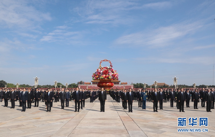 9月30日上午,黨和國家領(lǐng)導(dǎo)人習(xí)近平、李克強、栗戰(zhàn)書、汪洋、王滬寧、趙樂際、韓正、王岐山等來到北京天安門廣場,出席烈士紀(jì)念日向人民英雄敬獻花籃儀式。 新華社記者 謝環(huán)馳 攝