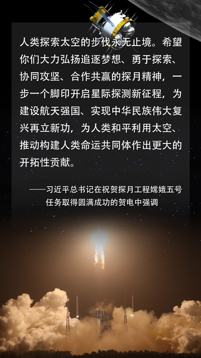 習(xí)近平代表黨中央、國務(wù)院和中央軍委祝賀探月工程嫦娥五號任務(wù)取得圓滿成功的賀電