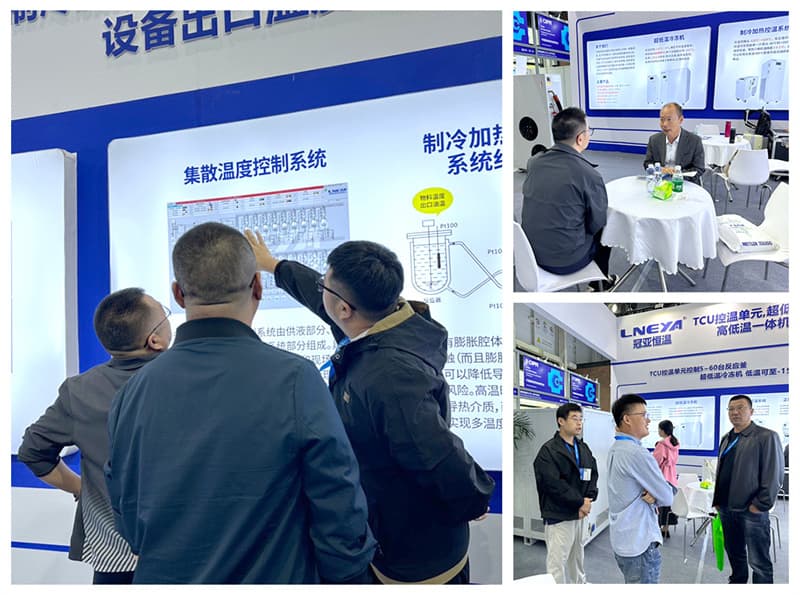 冠亞恒溫展出的高低溫一體機、TCU控溫單元、超低溫冷凍機,憑借其寬溫域覆蓋/高精度控制/快速升降溫/系統穩定可靠/操作便捷安全,成為現場關注的焦點。眾多觀眾駐足體驗,深入咨詢,充分展現了市場對高精度制冷加熱控溫設備的迫切需求。