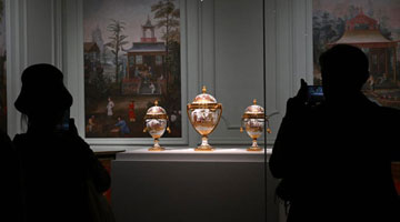 4月11日,工人在山海关中国长城博物馆展厅布展。