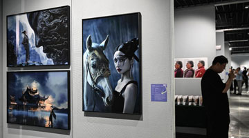 6月1日,一名女孩站在美国加利福尼亚州阿拉米达县的一处沙雕作品前。