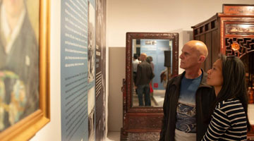 6月1日,一名男孩站在美国加利福尼亚州阿拉米达县的一处沙雕作品前。