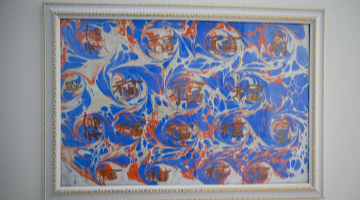 虞金顺在艺术馆观看自己创作的乐清黄杨木雕作品展览(11月25日摄)。