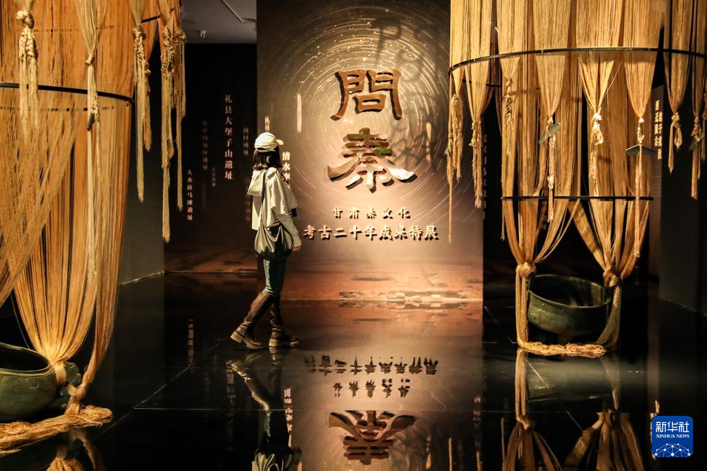 5月18日,在位于甘肃省兰州市的甘肃简牍博物馆,观众在参观“问秦——甘肃秦文化考古二十年成果特展”。