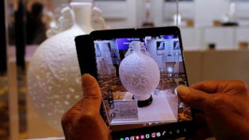12月10日,观众在中国美术馆拍摄展出作品。