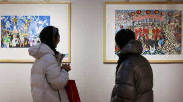 1月17日,人们在非遗集市上选购文创产品。