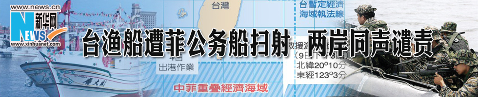 | · | 國臺辦強烈譴責槍殺臺漁民野蠻行徑 要求菲方徹查 (05-09) |